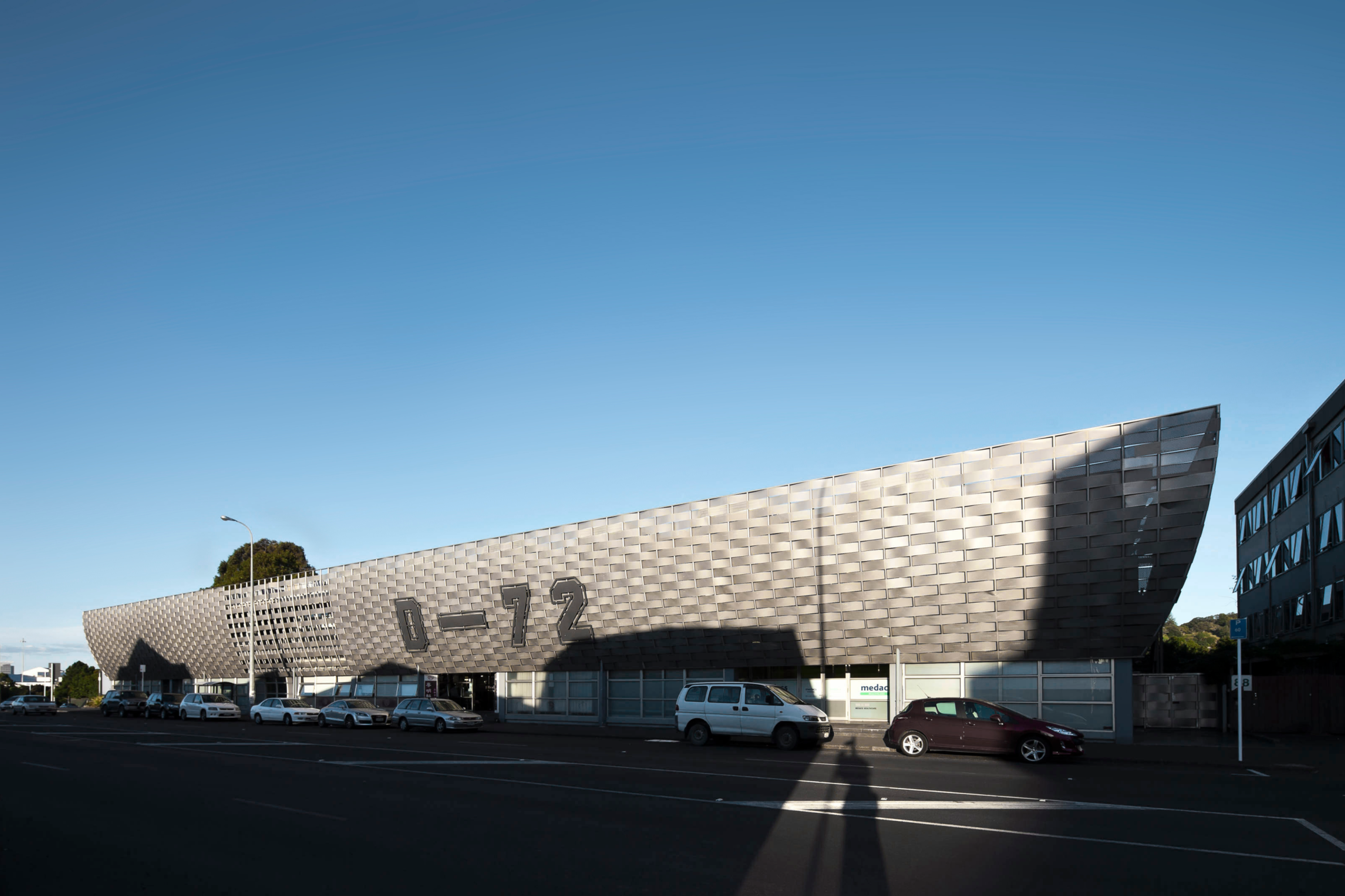 D72 stands out in more ways than one. The building’s most captivating feature is the woven aluminium façade, inspired by Pacific Island motifs. Wrapping around the exterior, this unique feature offers a sophisticated way to filter sunlight throughout the building, while also adding a striking visual pattern.